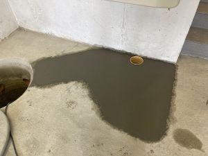 Aufmauern und verputzen einer Schneckendusche. Verkleidet mit Natursteinmosaik.