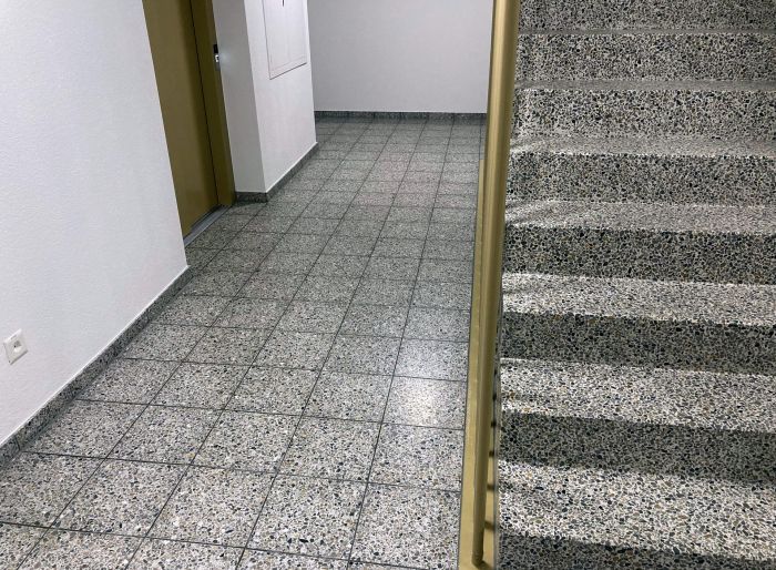 ca. 105m2 Treppenhaus Kunststeinplatten 30x30cm