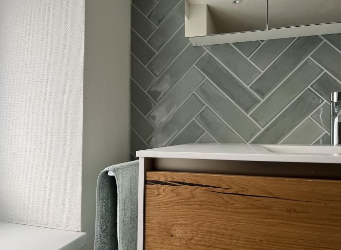 Verlegen von Steingutplatten im Fischgrat-Verband