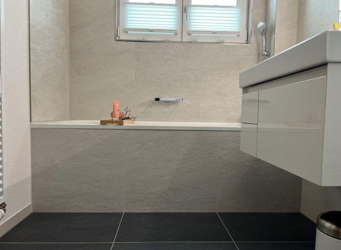 Egal ob im Bad- oder im Wohnbereich: Grossformatige Platten eignen sich für alle Räume und lassen Wohnträume wahr werden – wir beraten Sie gerne und verlegen grossformatige Platten fachmännisch als Wand- und Bodenbelag.