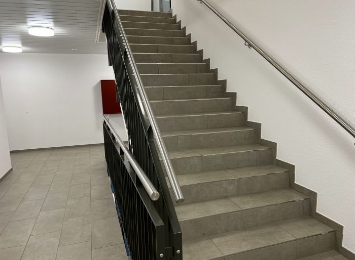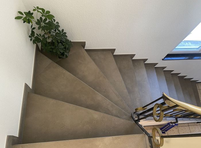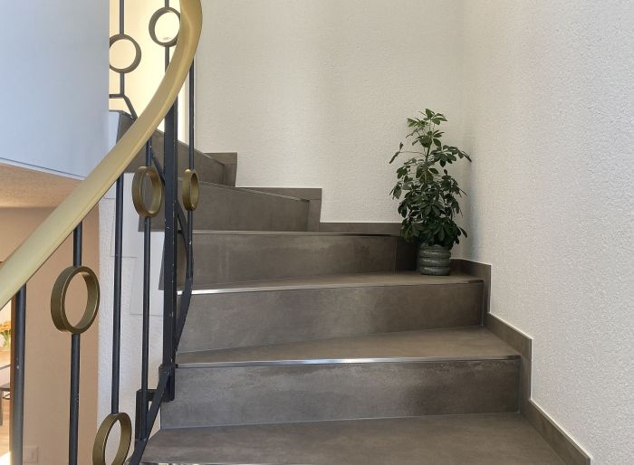 Treppe mit grossformatigen Bodenplatten 60x120cm verlegt