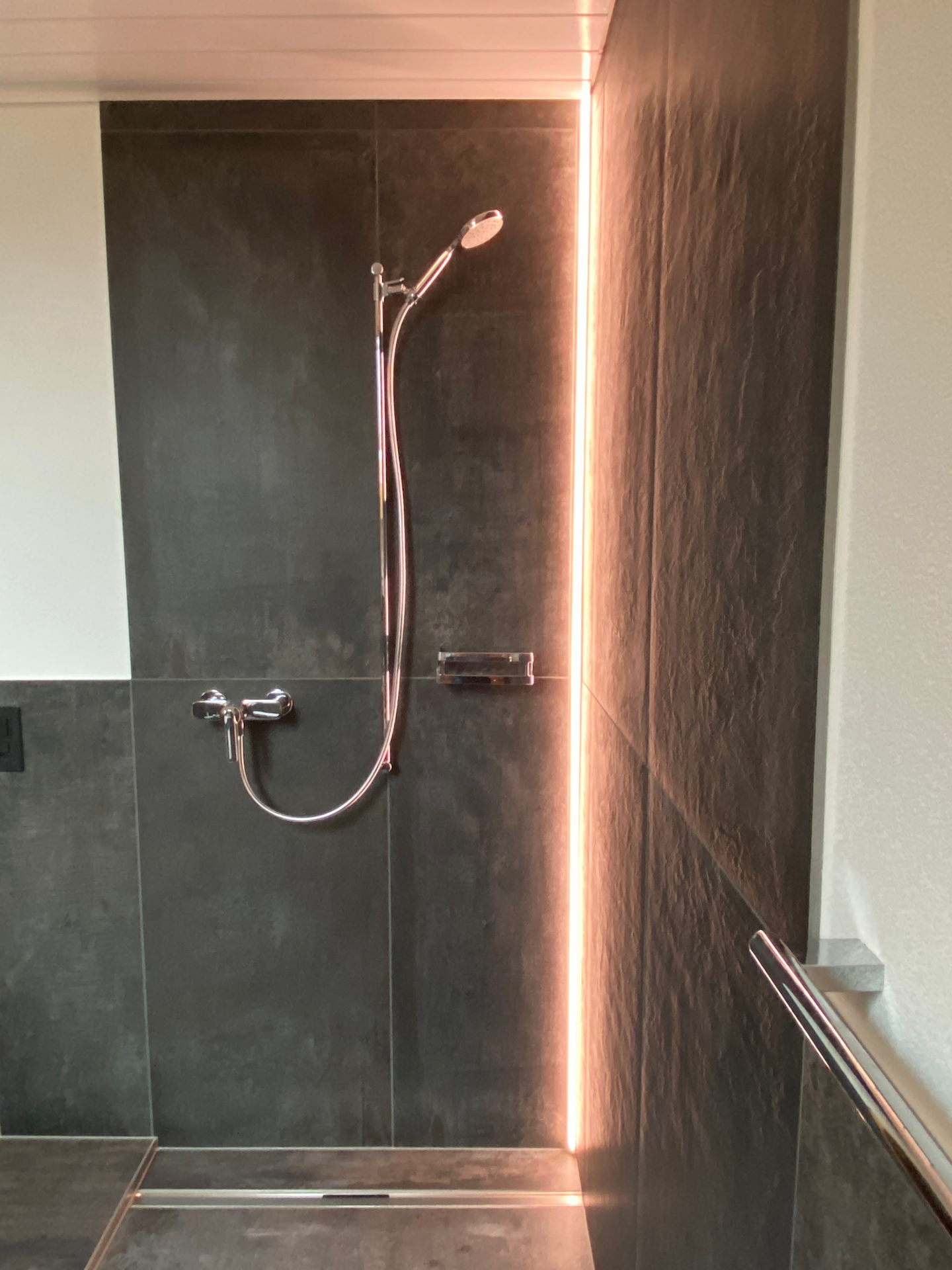 - In der Duschecke einarbeiten eines LED - Lichtbandes