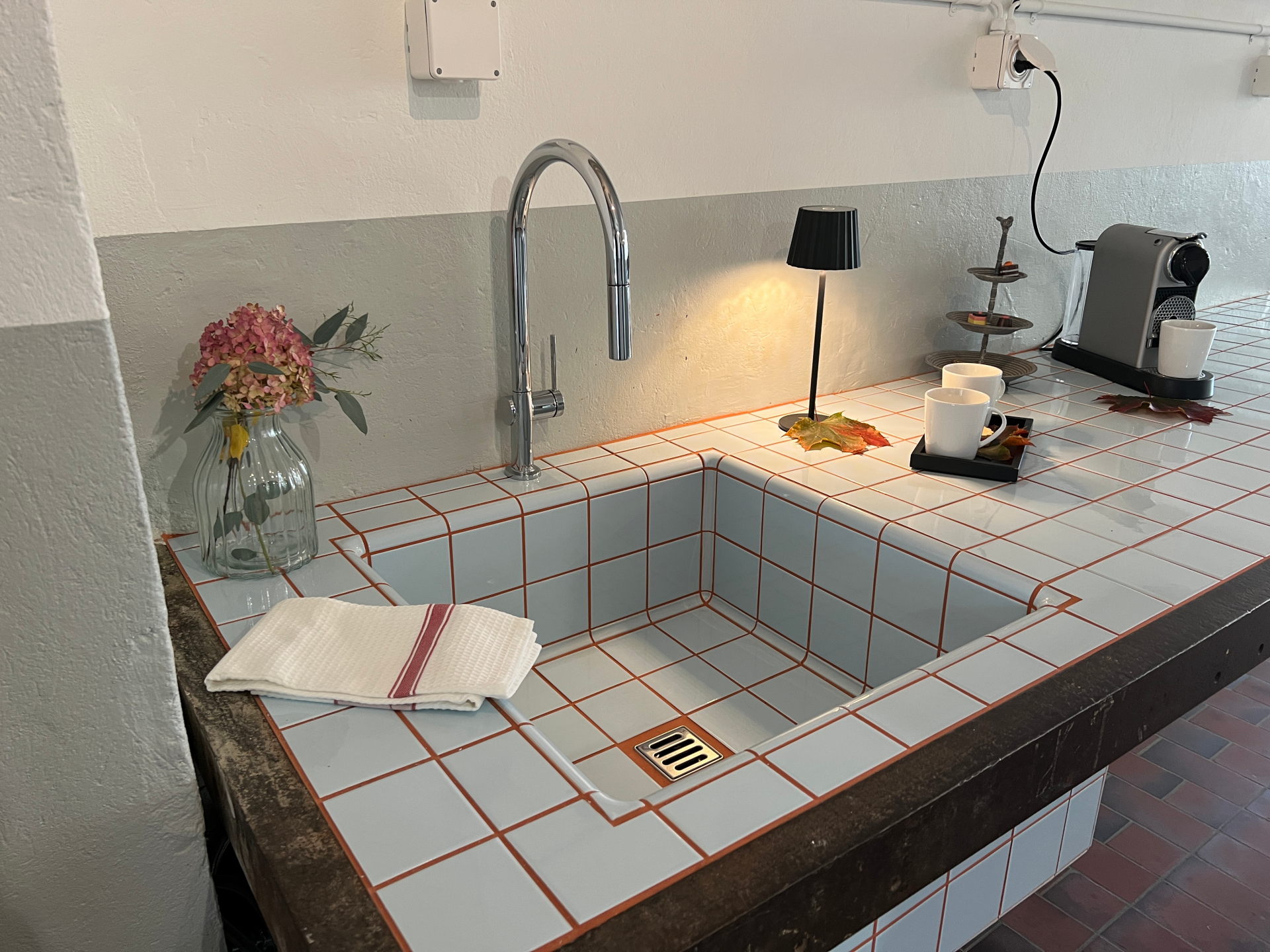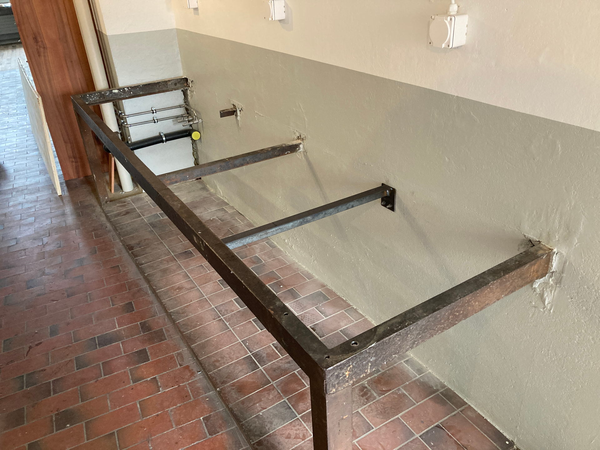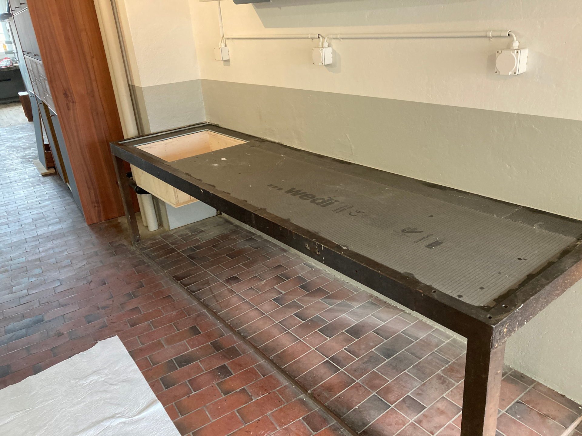 Alter Werkbank umgebaut zur Küchenablage mit Lavabo